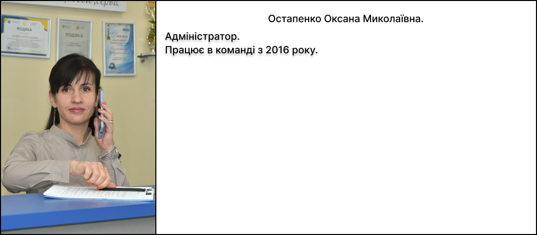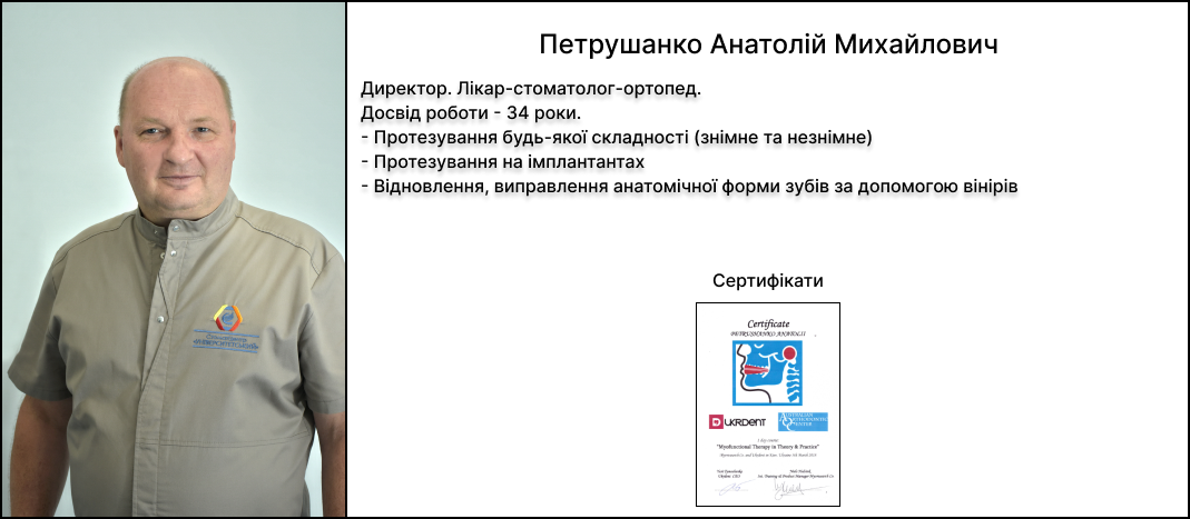 ― ― ― ― ― ― ― ― ― ― ― ― ― ― ― ― ― ― ― ― ― ― ― ― ― ― ― ― ― ― ― ― ― ― ― Консультація стоматолога-терапевта, парадонта, стоматолога-ортопеда - 600 грн. ― ― ― ― ― ― ― ― ― ― ― ― ― ― ― ― ― ― ― ― ― ― ― ― ― ― ― ― ― ― ― ― ― ― ― Консультація стоматолога-хірурга від 600 грн. ― ― ― ― ― ― ― ― ― ― ― ― ― ― ― ― ― ― ― ― ― ― ― ― ― ― ― ― ― ― ― ― ― ― ― Консультація імплантолога від 600 грн. ― ― ― ― ― ― ― ― ― ― ― ― ― ― ― ― ― ― ― ― ― ― ― ― ― ― ― ― ― ― ― ― ― ― ― Консультація ортодонта (з прорахунком лікування та презентацією, контрольно діагностичними моделями) - 2000 грн. ― ― ― ― ― ― ― ― ― ― ― ― ― ― ― ― ― ― ― ― ― ― ― ― ― ― ― ― ― ― ― ― ― ― ― Професійна гігієна ротової порожнини. ― ― ― ― ― ― ― ― ― ― ― ― ― ― ― ― ― ― ― ― ― ― ― ― ― ― ― ― ― ― ― ― ― ― ― Ультразвук +Air-flow + щітка, паста (2 щелепи) від 1550 - 2200 грн. ― ― ― ― ― ― ― ― ― ― ― ― ― ― ― ― ― ― ― ― ― ― ― ― ― ― ― ― ― ― ― ― ― ― ― Лікування карієсу від 1700 - 2750 грн. ― ― ― ― ― ― ― ― ― ― ― ― ― ― ― ― ― ― ― ― ― ― ― ― ― ― ― ― ― ― ― ― ― ― ― Художня реставрація зуба від 3250 - 4250 грн. ― ― ― ― ― ― ― ― ― ― ― ― ― ― ― ― ― ― ― ― ― ― ― ― ― ― ― ― ― ― ― ― ― ― ― Ендодонтія (лікування каналів зубу): Один канал від 1850 грн. ― ― ― ― ― ― ― ― ― ― ― ― ― ― ― ― ― ― ― ― ― ― ― ― ― ― ― ― ― ― ― ― ― ― ― Ендодонтія під мікроскопом: Один канал від - 2500 грн. Два канали від - 3700 грн. Три канали від - 4900 грн. Відновлення зуба після ендодонтичного лікування від 2200 - 3050 грн. Вінір керамічний 1 одиниця (без урахування відбитків та фіксації) – 6000 грн. ― ― ― ― ― ― ― ― ― ― ― ― ― ― ― ― ― ― ― ― ― ― ― ― ― ― ― ― ― ― ― ― ― ― ― Протезування: коронка металокерамічна 1 одиниця (без урахування відбитків та фіксації) – 3000 грн. коронка цирконієва 1 одиниця (без урахування відбитків та фіксації) – 6000 грн. частково знімний протез – 5400 грн. повний знімний протез - 5900 грн. бюгельний протез кламерний - 10900 грн. бюгельний протез на атачментах – 12900 грн. нейлоновий протез - 7400грн. ― ― ― ― ― ― ― ― ― ― ― ― ― ― ― ― ― ― ― ― ― ― ― ― ― ― ― ― ― ― ― ― ― ― ― Імплантація: 1 одиниця з протезуванням металокерамічною коронкою від 24200 грн. 1 одиниця з протезуванням цирконієвою коронкою від 29000 грн. ― ― ― ― ― ― ― ― ― ― ― ― ― ― ― ― ― ― ― ― ― ― ― ― ― ― ― ― ― ― ― ― ― ― ― Консультація ортодонта (з прорахунком лікування та презентацією, контрольно діагностичними моделями) - 2000 грн.: лікування ортодонтичними апаратами - від 4000 грн. лікування брекет-сестемою: Брекет-система металева на 1 щелепу - 15000 грн. брекет-система керамічна на 1 щелепу - 20000 грн. брекет-система сапфірова на 1 щелепу - 24000 грн. брекет-система самолігуюча металева на 1 щелепу - 30000 грн. активація брекет-системи (1 щелепа без заміни дуги) - 400 грн. активація брекет-системи (1 щелепа з заміною дуги) - 600 грн. ― ― ― ― ― ― ― ― ― ― ― ― ― ― ― ― ― ― ― ― ― ― ― ― ― ― ― ― ― ― ― ― ― ― ― Рентгенологія: візіографія - 150 грн. панорамний знімок - 500 грн. комп’ютерна томографія сегмент - 500 грн. комп’ютерна томографія одна щелепа - 700 грн. комп’ютерна томографія дві щелепи - 1000 грн. ― ― ― ― ― ― ― ― ― ― ― ― ― ― ― ― ― ― ― ― ― ― ― ― ― ― ― ― ― ― ― ― ― ― ―